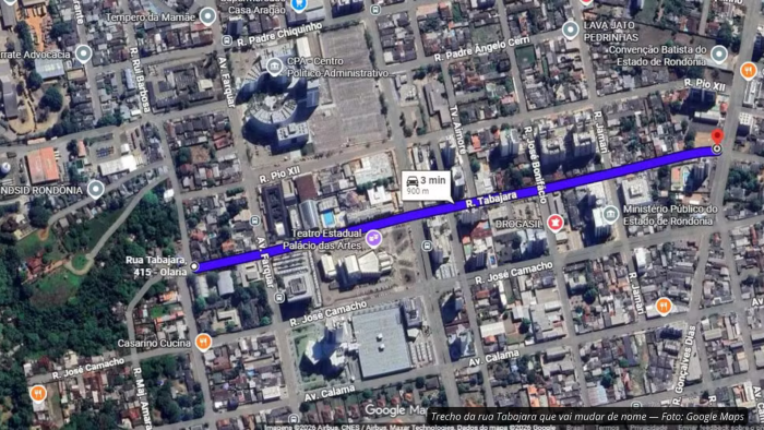 A rua Tabajara também teve parte de sua nomenclatura alterada. Em um trecho de cerca de 900 metros, localizado nos fundos do tribunal, entre a avenida Lauro Sodré e a rua Major Amarante, o novo nome passa a ser rua Desembargador Darci Ferreira, primeiro presidente do Tribunal Regional Eleitoral de Rondônia.